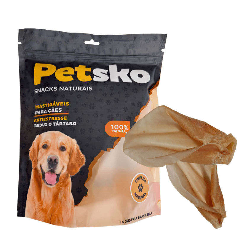 Pacote contendo 4 unidades de orelha bovina natural.